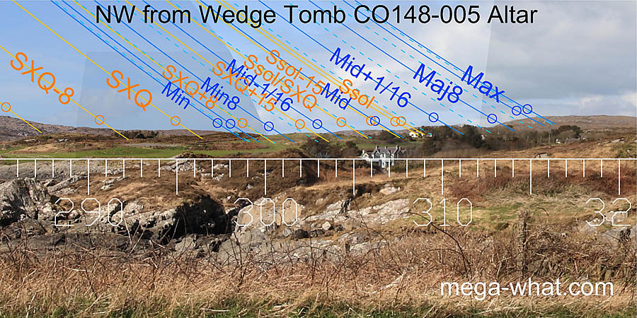 The orientation of the tomb actually covers a period of a month or so centred on the cross-quarter day but the entire south-western horizon quadrant provides a whole series of useful markers for both the solar and lunistice cycles.