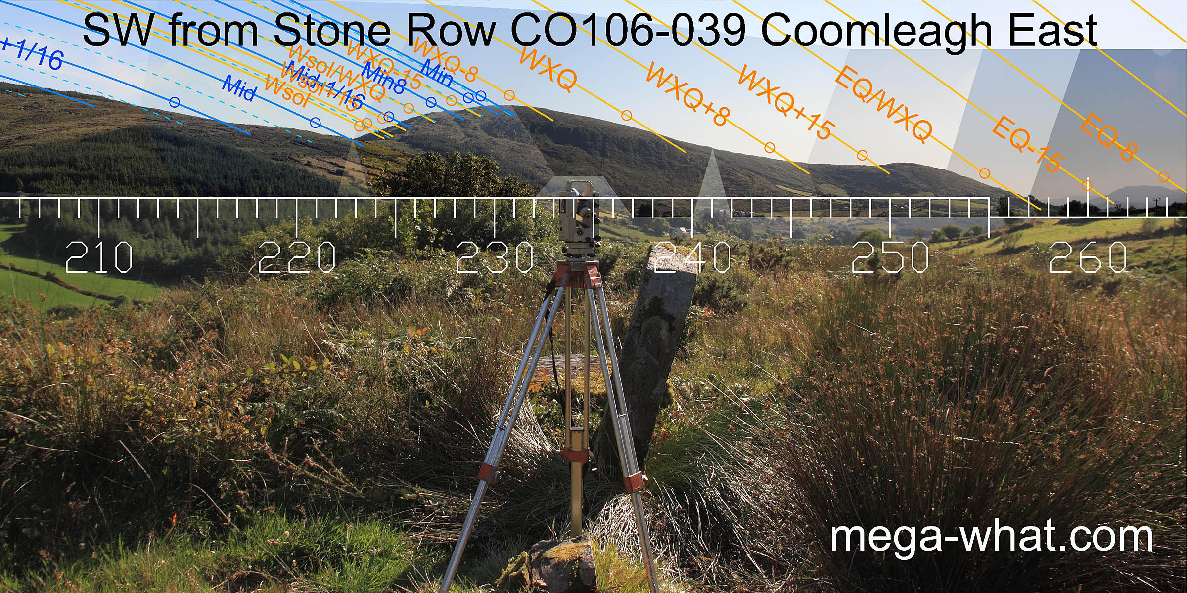 - Cullenagh Stone Row is over the ridge 3.7km east (112°)