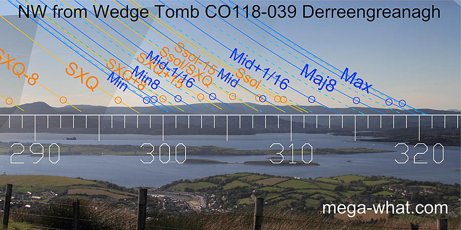 The western horizon is more distant and generally gives better precision. In the south-west, both major standstill and winter solstice sets are on hilltops.