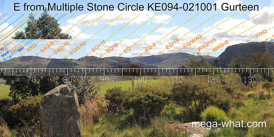 Eastwards, the equinox is indicated by a hilltop and the month centred on it is well marked. Summer and winter cross-quarters are at the left end of hilltops.