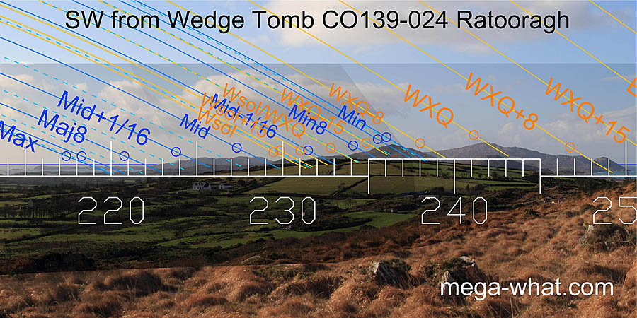 To the east, the summit of Mt. Gabriel is accurately equinoctial. On the ridge which runs westwards from Mt. Gabriel virtually every high and low point forms a significant marker.