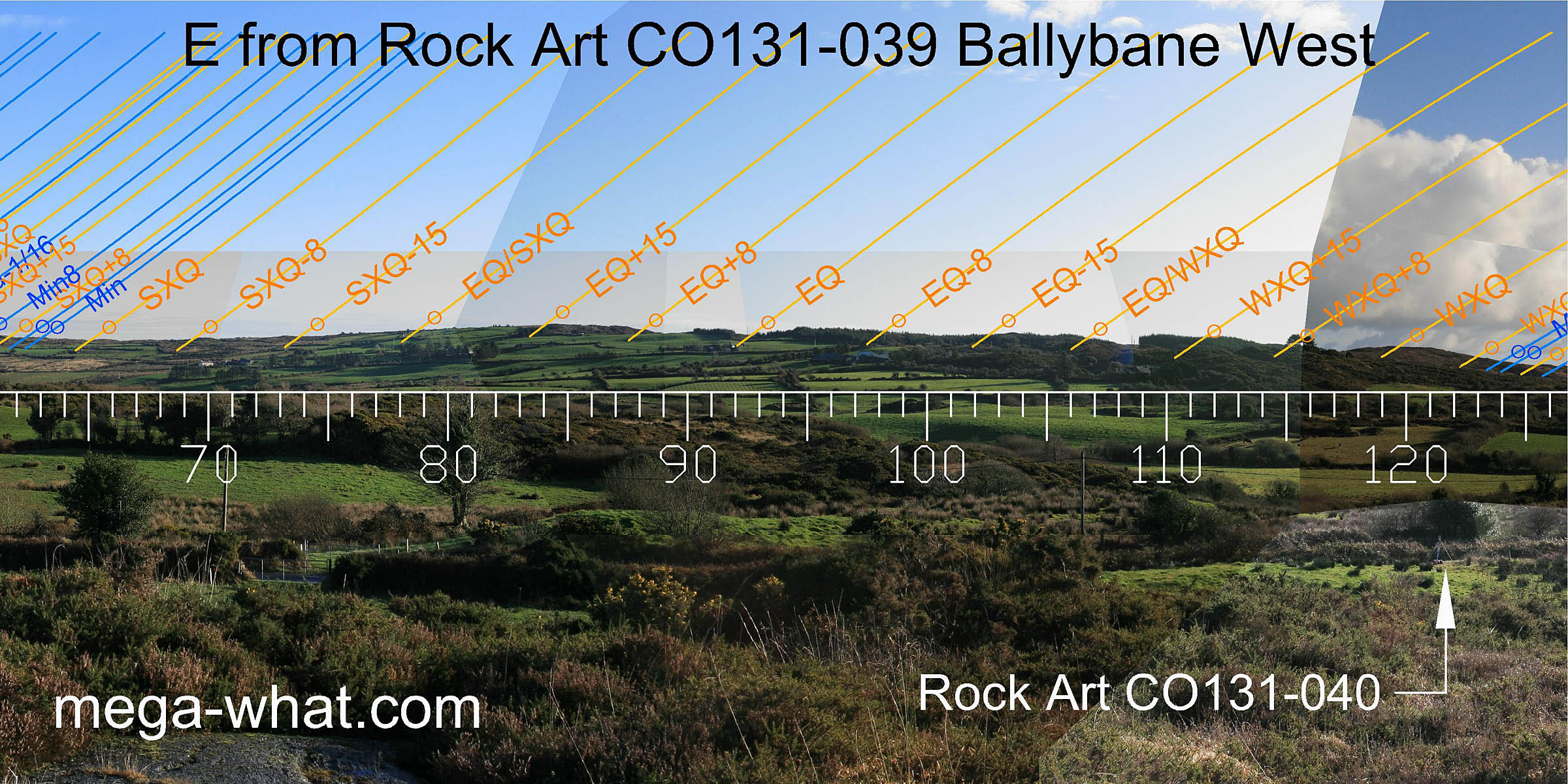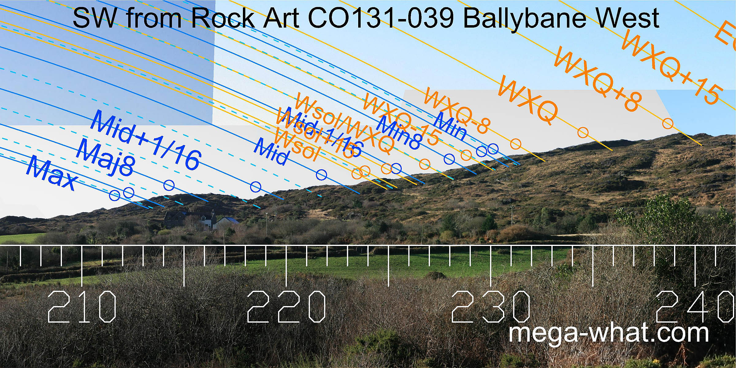 The sixteenth beyond the midpoint is then in a dip and the major eighth rises along the side of a distant hill. This is Knockomagh, about 11.5km away and the major end of the lunistice range falls on its southern slope, with a thirty-secondth actually at the summit.