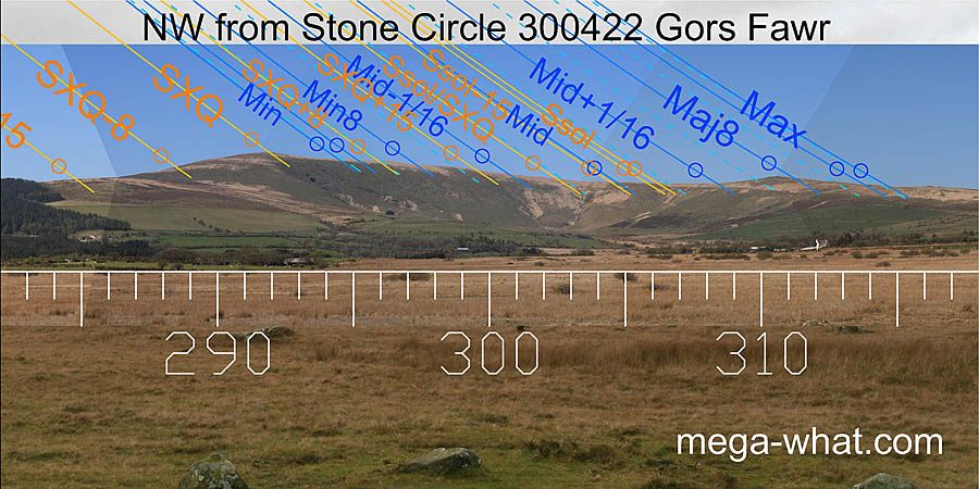 Half a month to the south of the cross-quarter is Foel Drych's central dip/break, then the equinox / cross-quarter midpoint is at the southern end of the hilltop